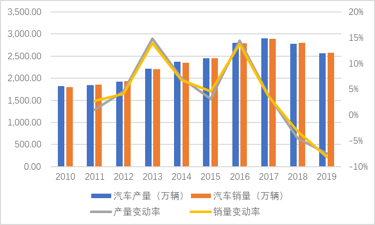2010-2019年度中国汽车产销量变动图1