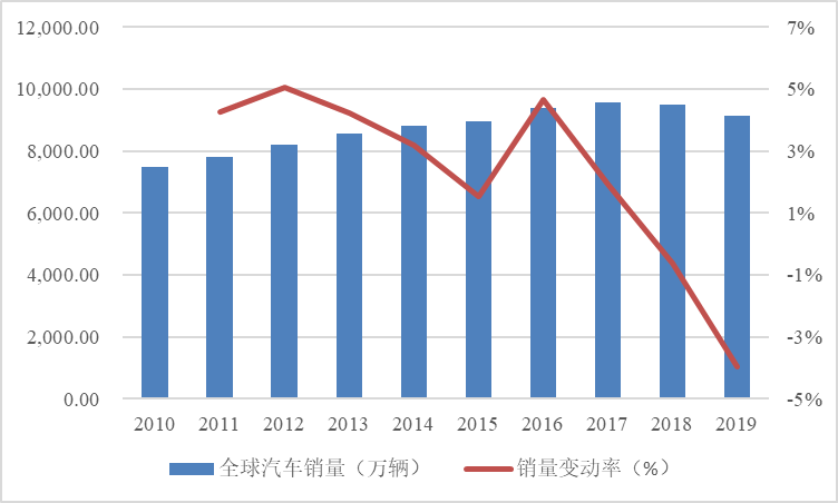 2010-2019年度全球汽车销量变动图2